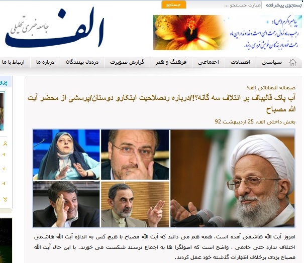 سخنان و موضع آیت الله مصباح یزدی، بسیار روشن و واضح شرایط فعلی را مشخص کرده و طبق آن، تکلیف را مشخص می کند؛ اما گویا برخی با سیاست "لولوسازی" به دنبال متناقض جلوه دادن مواضع علامه مصباح یزدی و سنگین کردن فضای رسانه ای علیه کاندیدای اصلح اند؛ جایی که هر یک از رسانه های اینترنتی به دنبال بزرگ کردن خطر افراد مطرود و معلوم الحال اند تا به مقاصد کثیف و منافع خود برسند؛ مطلب زیر، که به اصطلاح "صبحانه انتخاباتی الف" است، مصداق یکی از همین جنجال هاست؛